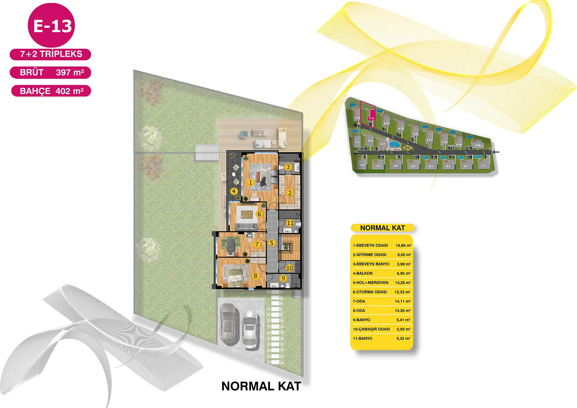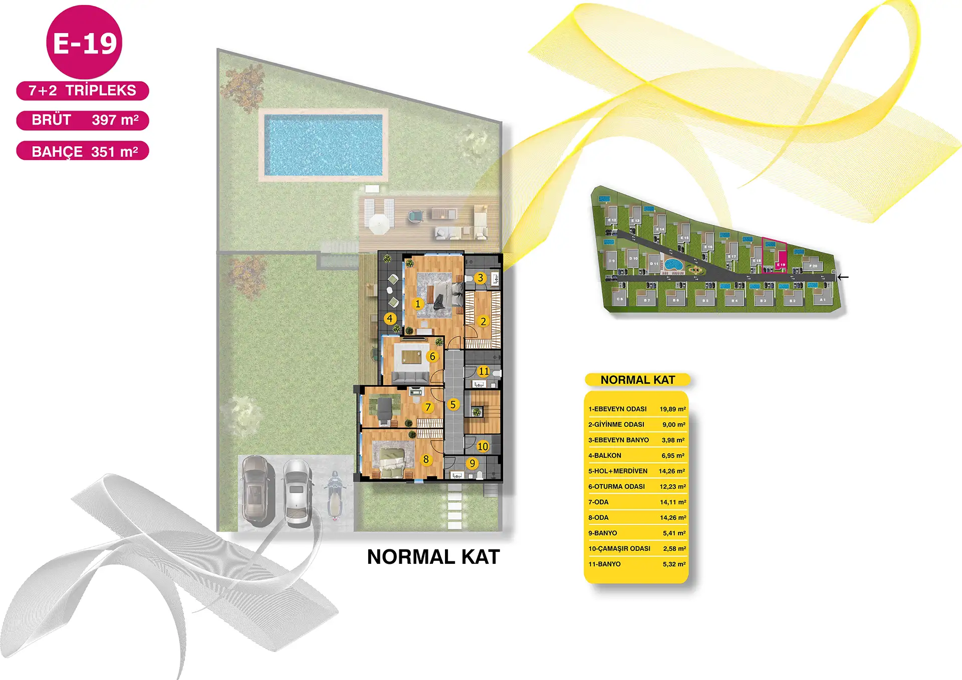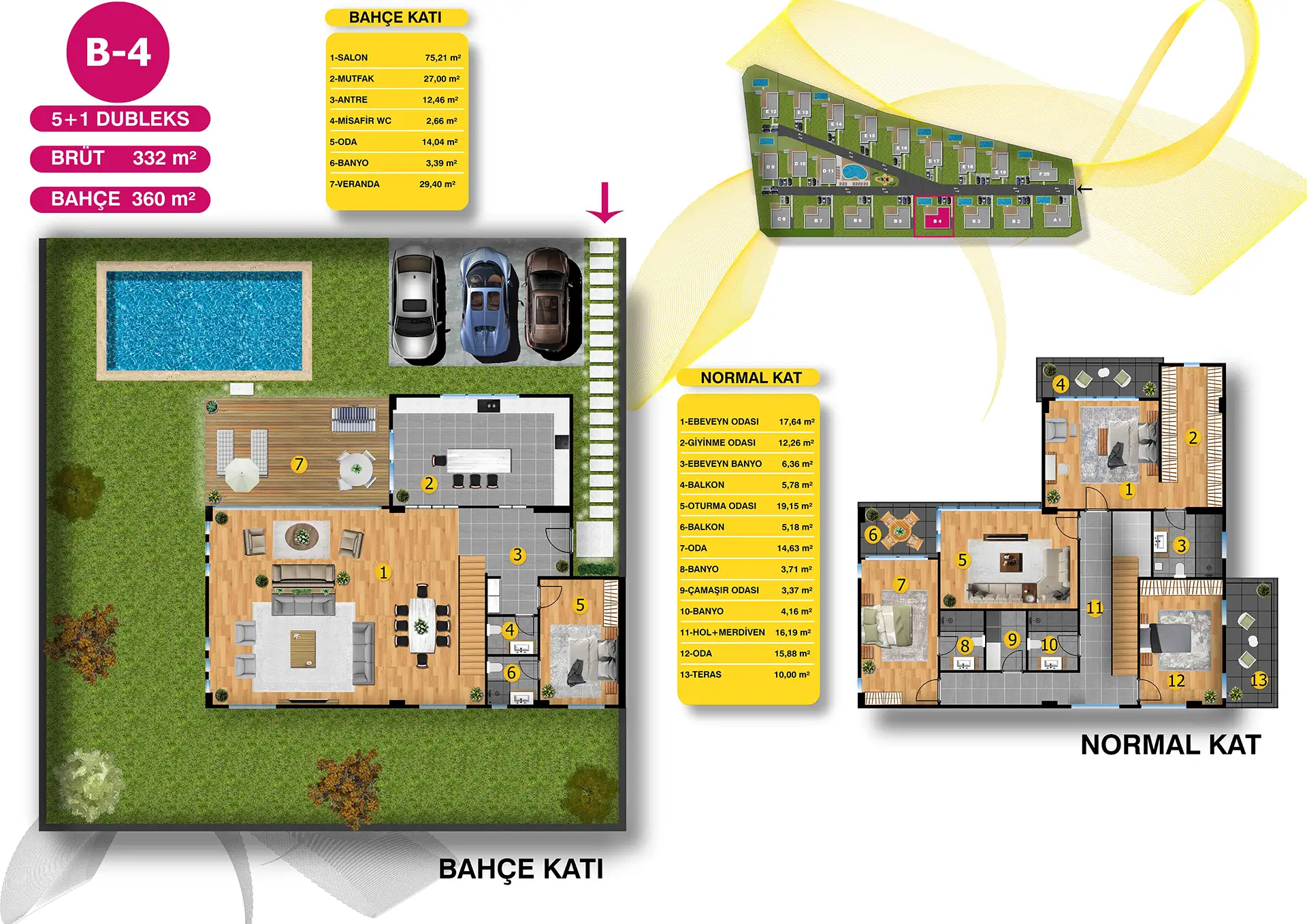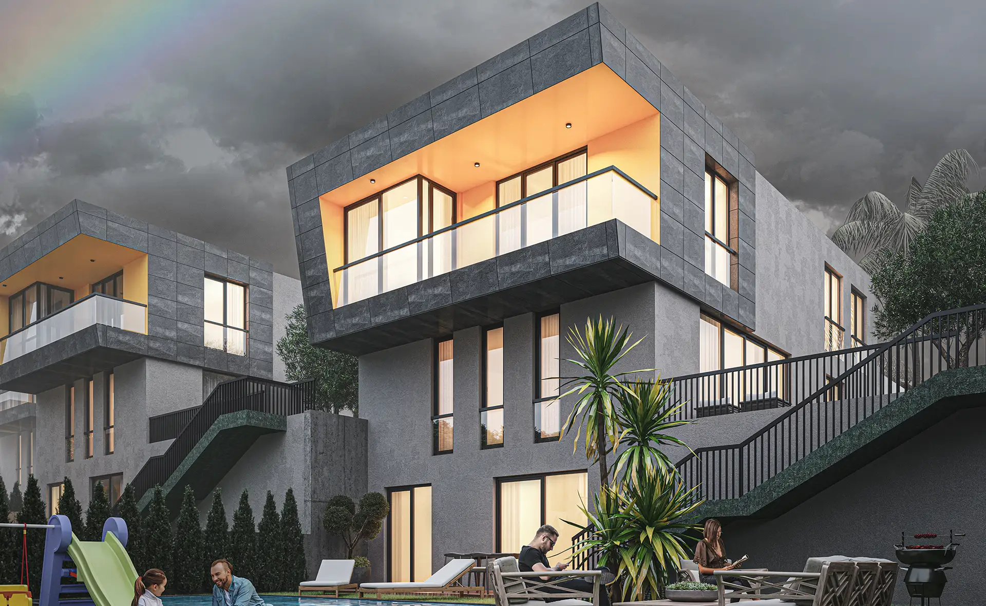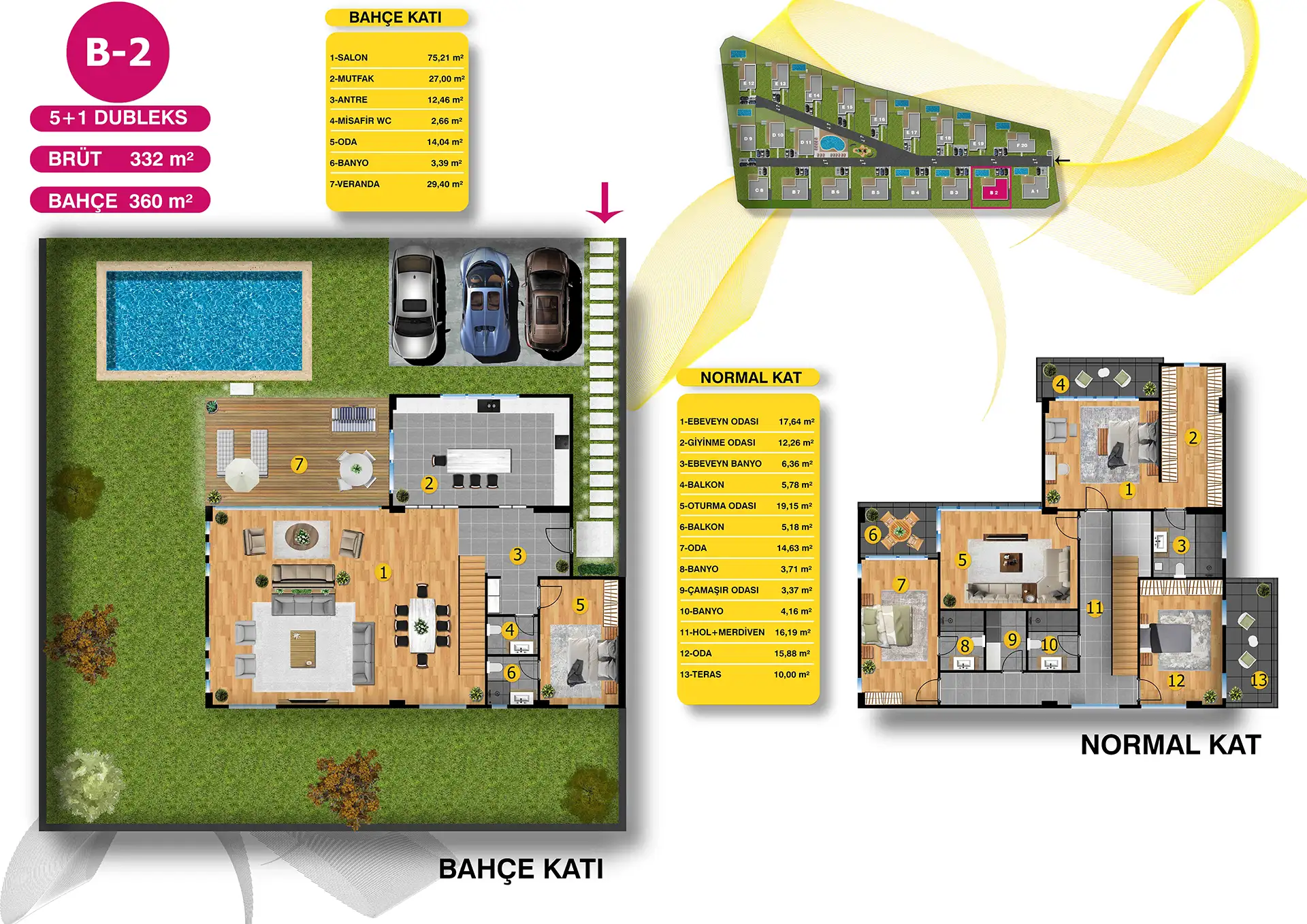 Mimari estetiğin, konforla bir araya geldiği villalarımız, bahçe ve havuz seçenekleri ile size ve ailenize keyifli vakit geçirebilmeniz için bir yaşam alanı sunuyor. Özel bahçe ve havuzun yanı sıra geniş ailelerin tercihi tripleks villalarımızda iki ayrı giriş bulunuyor.