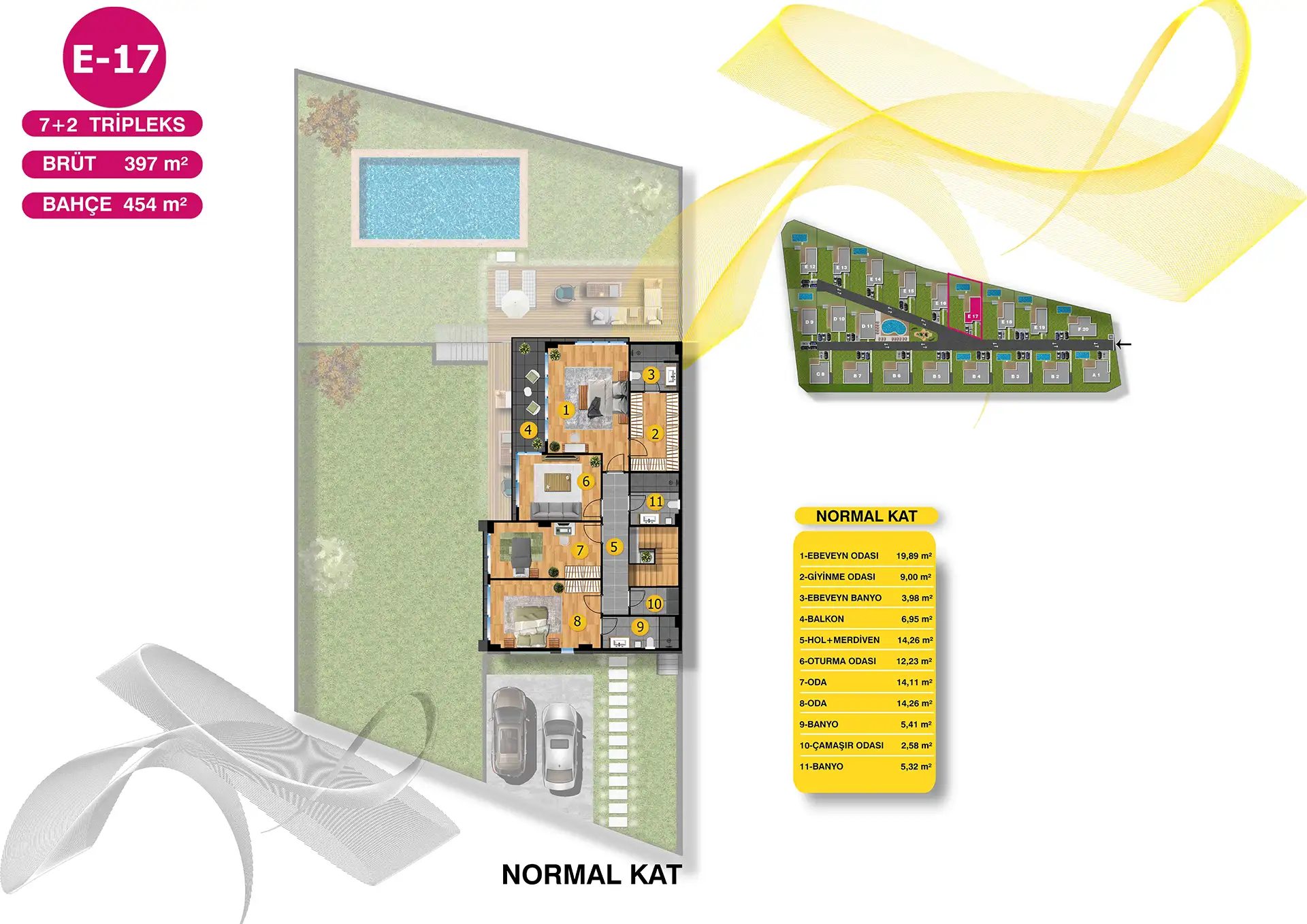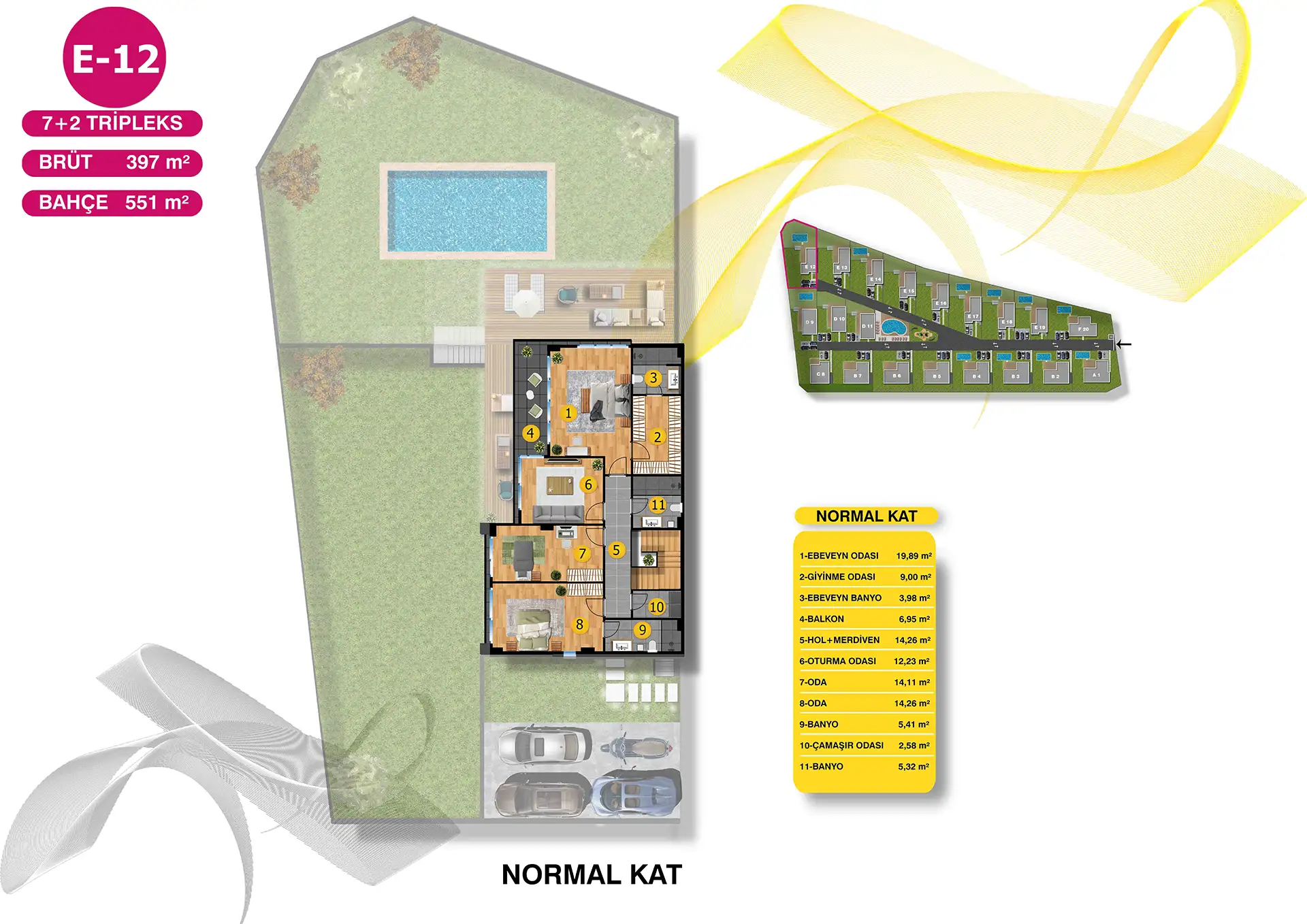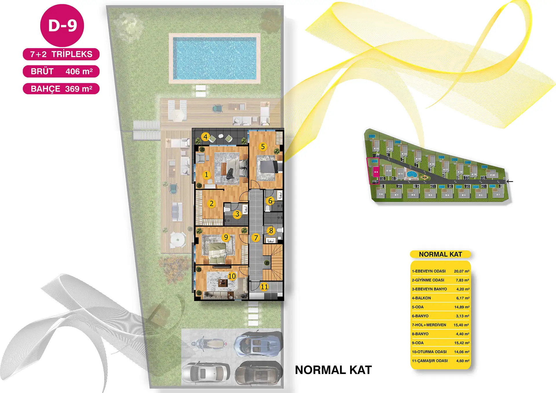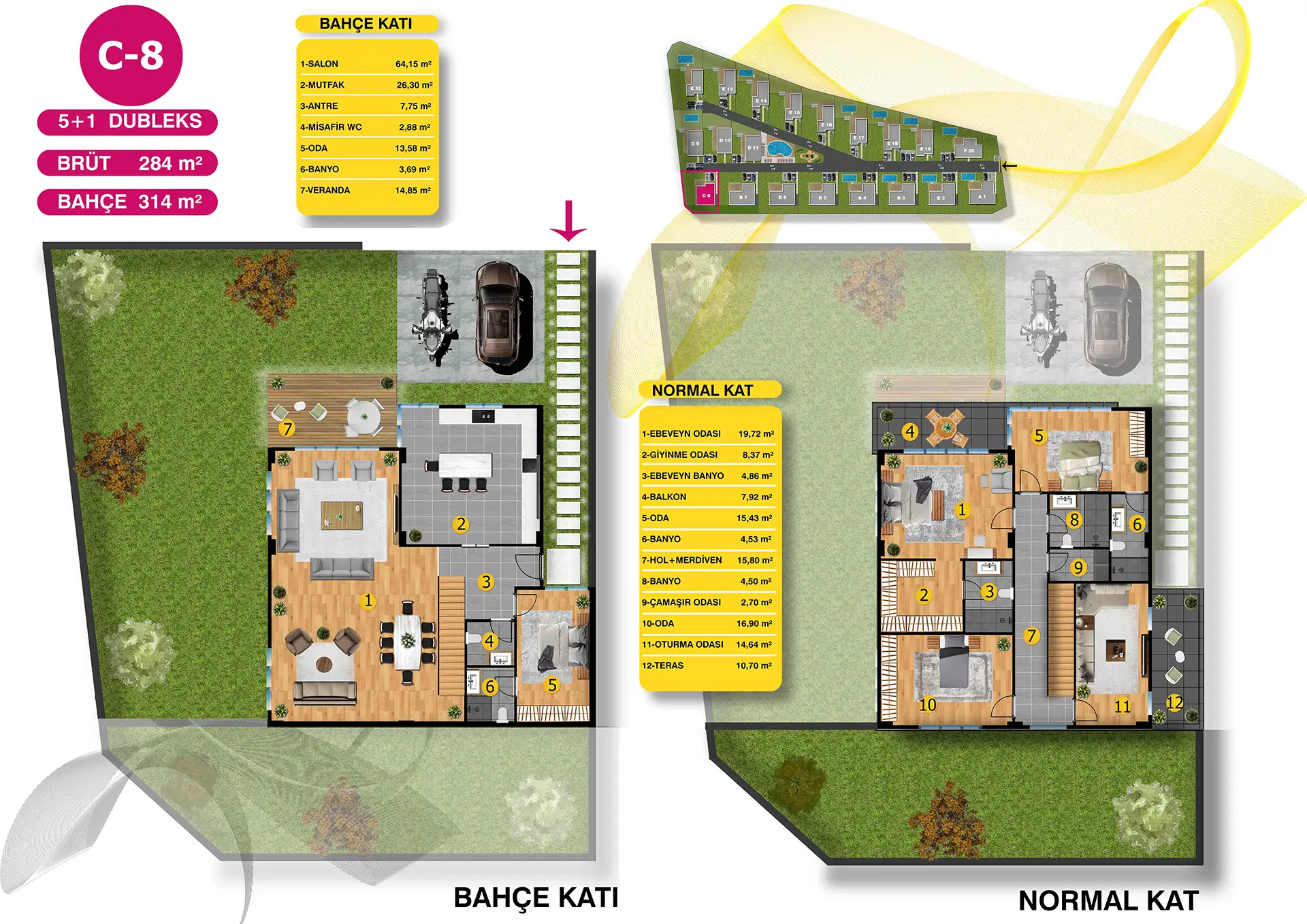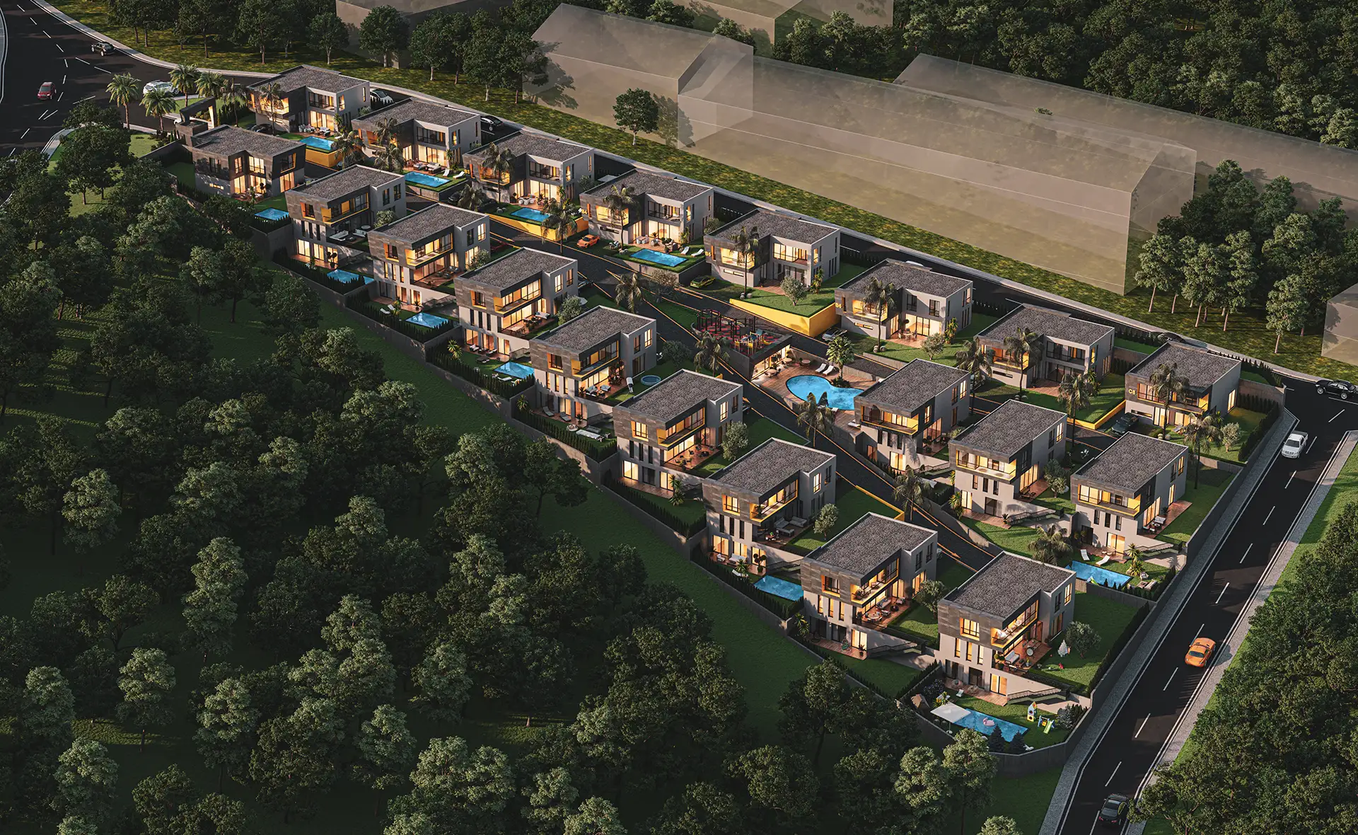 5+1 Dubleks ve 7+2 Tripleks seçeneklerinden oluşan Villa Green yeşilin her tonuyla 12 dönüm arazi üzerinde 20 adet villa ile yükseliyor.