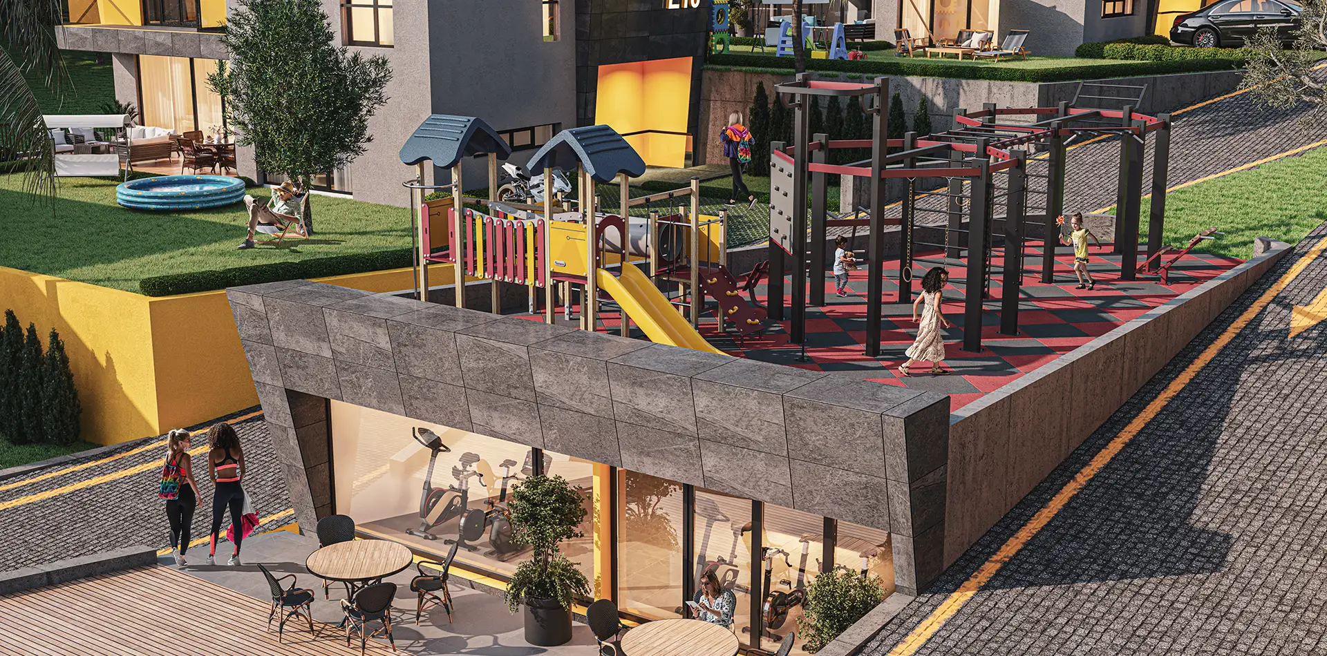 Birçok olanağı bir arada sunan Villa Green’in sosyal tesislerinde bulunan fitness salonunda sporunuzu yapabilir, cafeteryamızda sıcak sohbetlerinizi bir kahve ile taçlandırabilir, açık havuzumuzda ve oyun parkımızda keyifli anlar yaşayabilirsiniz.