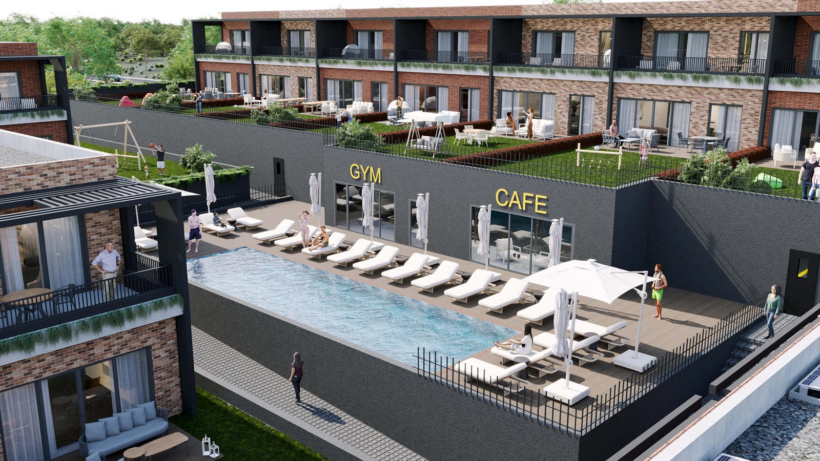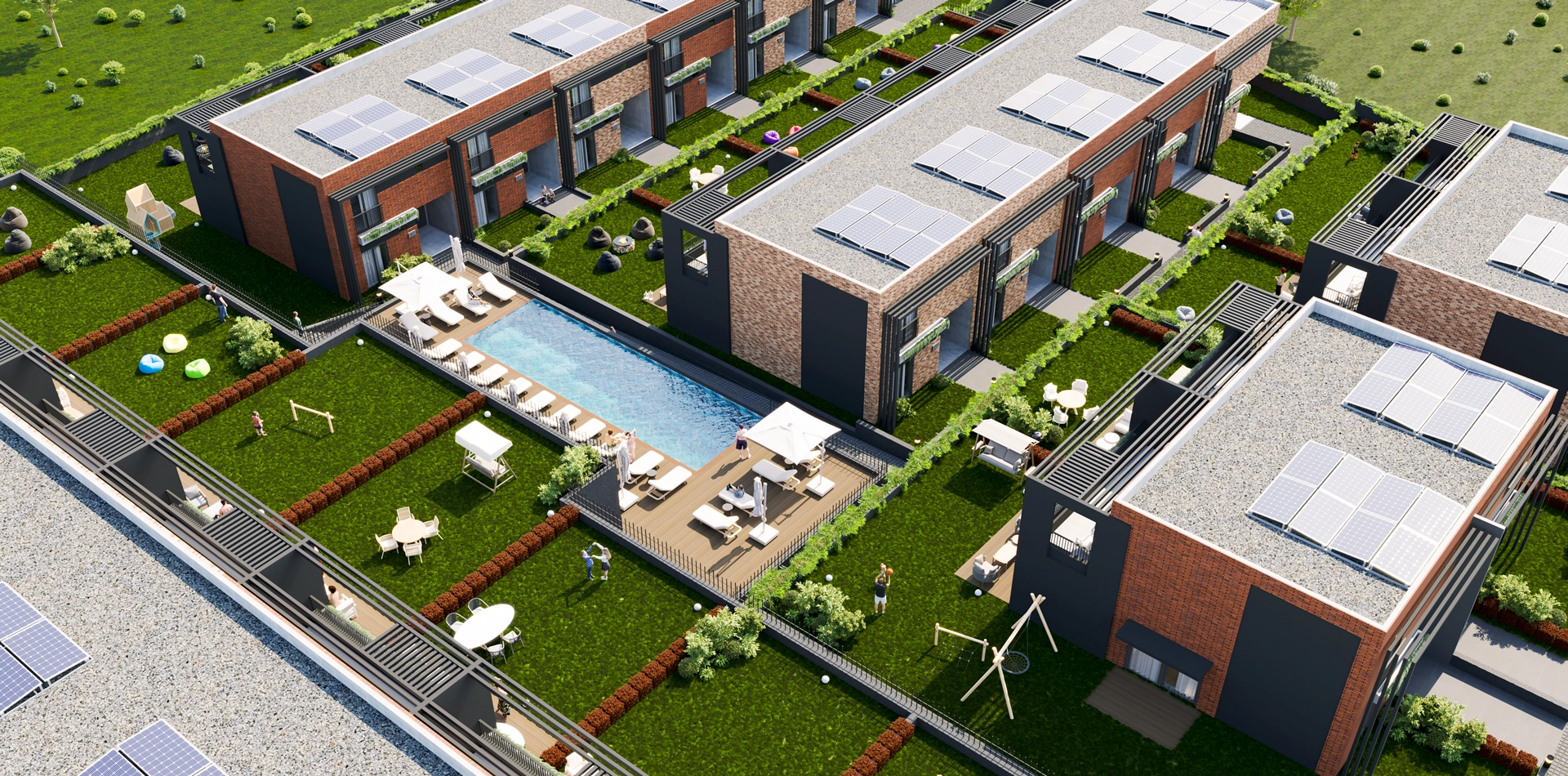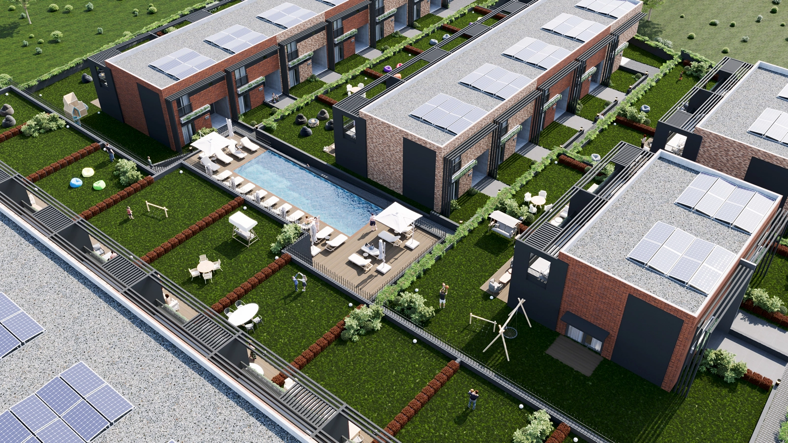 Her villaya özel kapalı otopark ve 15 m² depolama alanı ile hayatınızı kolaylaştırıyor. Açık havuz, fitness salonu, cafeterya ve 7/24 güvenlik ile sosyal ve güvenli bir yaşam sunuyor.