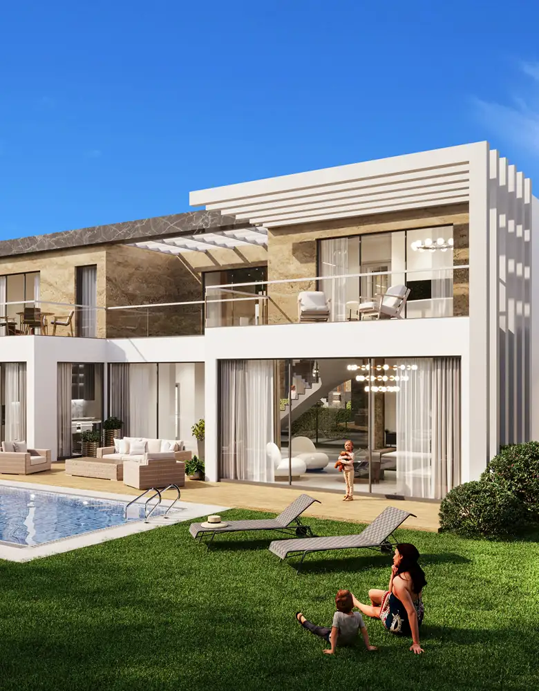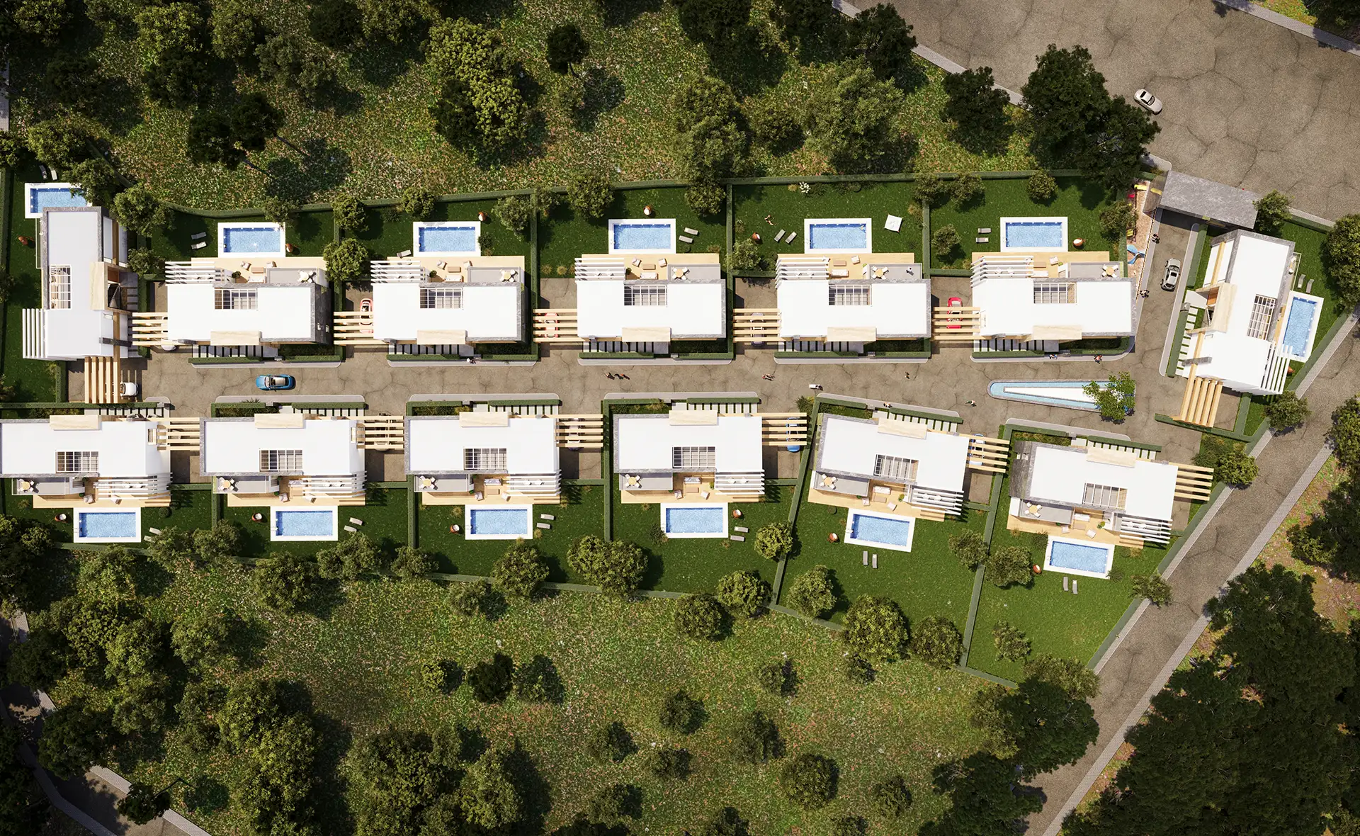 Villalarımızın tümü ailenizle keyifli vakit geçirebileceğiniz geniş bahçe ve özel havuza sahip. Bunun yanı sıra site içerisinde kamelya alanı ve çocuk oyun parkı da mevcut.